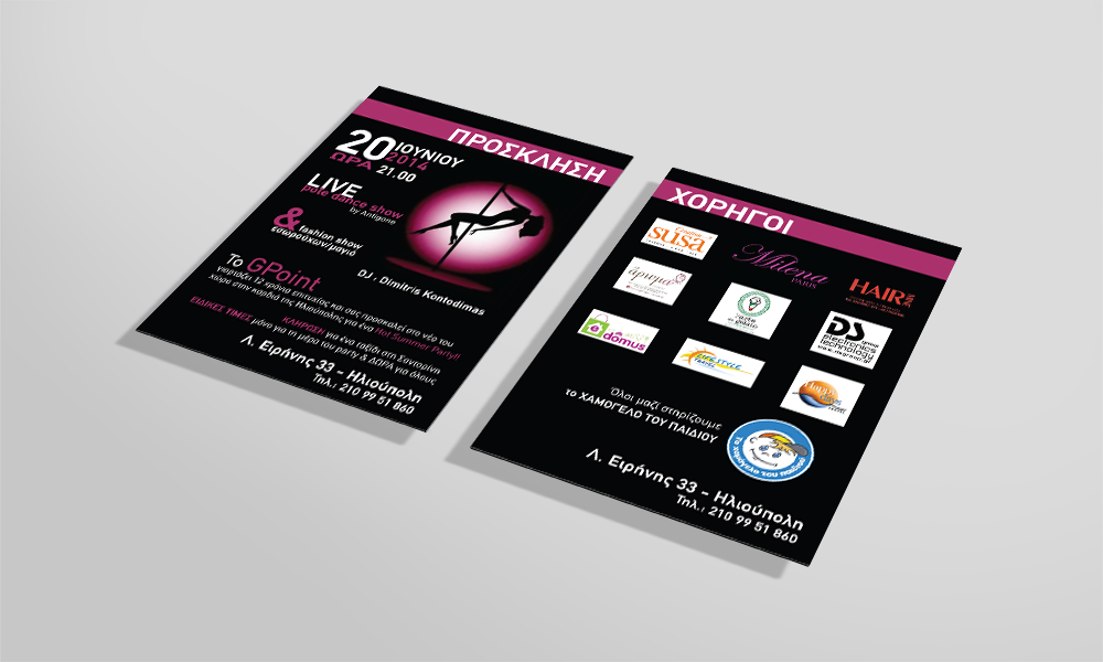 Σχεδιάστε μαζί μας πρωτότυπα, αποτελεσματικά, και αισθητικά όμορφα φυλλάδια και δημιουργήστε νέες επιχειρηματικές ευκαιρίες. Μέσω αυτού του προωθητικού μέσου μπορείτε να ενημερώσετε τους πελάτες σας και την τοπική αγορά για νέα προϊόντα, υπηρεσίες, ή προσφορές που διαθέτετε ή να ξεκινήσετε μια εποχιακή (ή μη) εκπτωτική καμπάνια.